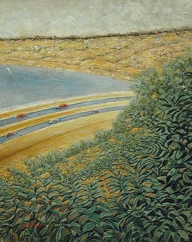 In the 1930s, Friedman developed views of the New York City area that would become a hallmark of his later career. In landscapes such as The Basin (1938), Highway Scene (circa 19435-40), North Drive (Grand Central Highway) (circa 1935-40), and High Tide (circa 1935-40) dramatic, patterned compositions define carefully ordered vistas. Far from the quotidian, these scenes share a visionary quality. In Ulster County Landscape (1940-46), Untitled (Tugboat Scene) (circa 1935), and View of Palisades from Manhattan (1946), Friedman took abstraction further, depicting nature in symmetrical areas of heavy, stippled impasto. His Tree Stumps (1945 or 1946) employs a bold palette to portray a strikingly spare tableau of denuded nature. Similarly, Friedman’s interiors and still lifes are elevated from the everyday through strong, non-naturalistic color, as in Still Life (circa 1942-46) and Interior with Cat (circa 1942-43). Friedman also distinguished himself as a painter of urban scenes, particularly of bustling streets, such as Park Avenue (circa 1940) and Untitled (Two Views of Park Avenue) (circa 1939).