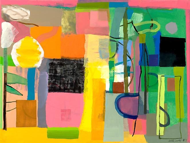 “Bill Scott: Recent Paintings” provides an evocative and stimulating voyage through the mind of an artist whose painting is as alive as his personal philosophies. Scott’s experimentation with color and form is an exploration of what our eyes see before the mind seeks to focus and clarify. Appropriately timed on the cusp of spring, the paintings echo the season when clear urban lines begin to blur from the blossoming vibrant colors and sensual forms that emerge in spring.