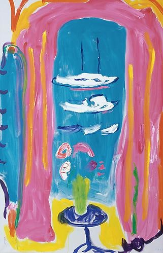 In addition to New York, another very important place for Kane is the Mediterranean coast of France and Italy, where he has regularly visited for forty years. Works including the large-scale Hibiscus in Front of Window, Positano (2005), Marincanto Positano Vista della Camara Undici (2005), and Positano (Marincanto) (2005) express the light, leisure, and joy Kane associates with the area. As views through a window to a cobalt sea, they pay homage to Matisse’s celebration of the south of France. But their gestural, animated brushwork, combined with their remarkably bold palettes, make the paintings—and the artistic journey—distinctively Kane’s own.