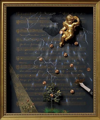 The artists included in the exhibition respond to events both personal and cultural, finding their answers in objects and images. To express their ideas they delve into personal hordes, retrieve items from drawers, and dig into piles of miscellanea that fill shelves, storage bins, or even whole rooms. Objects are sought out, or purchased, or discovered at random, but assume their most significant meanings within a box.