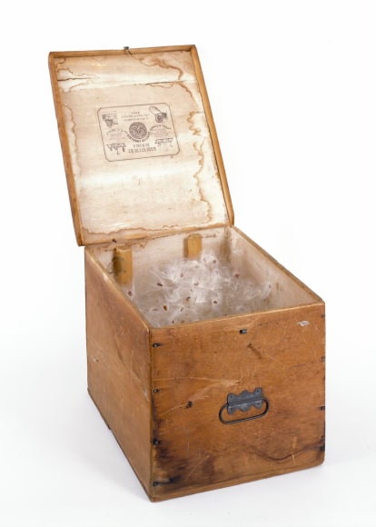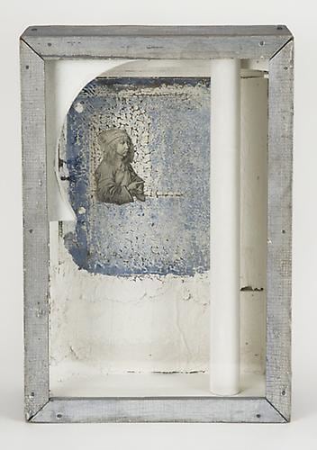 Joseph Cornell (1903-1972) is inextricably linked with box construction and often considered the pioneer of the medium. Developing his practice of collage and assemblage in the mid-thirties, Cornell emerged from the influential New York Surrealist circle. Establishing his iconic style, he continued to produce boxes and collages throughout his career. As the works Untitled (Dürer), c. 1952 and Constellation Variant, 1955-58 suggest, Cornell was a master at establishing understated but vital connections between found objects. Images of celestial forms and Renaissance art suggest voyages of time and place, hinting at the fragility and endless possibilities of experience. Cornell’s art would impact many American artists from the Abstract Expressionist circle to the contemporary artists featured in this exhibition.