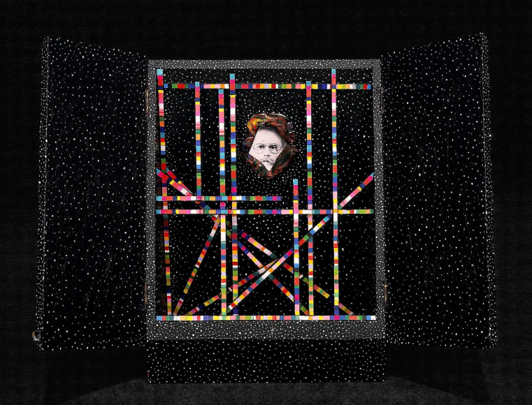 In contrast to Rabkin, Samaras’ renowned artistic personality is a purposefully chimerical one, leading to his use of a range of media including painting, sculpture, drawing, and photography. Samaras’ boxes were crucial components of his early career, gaining him great notoriety since the 1960s, with production continuing into the 1980s. Samaras (b. 1936) used the box as part of his self-centric presentations, frequently including photographic self-portraits, such as in Box # 101, 1977-89. Earlier works in the Chicken Wire series, such as Untitled, 1965 employ simplified shapes, referencing in part the Minimalist trends of the period.
