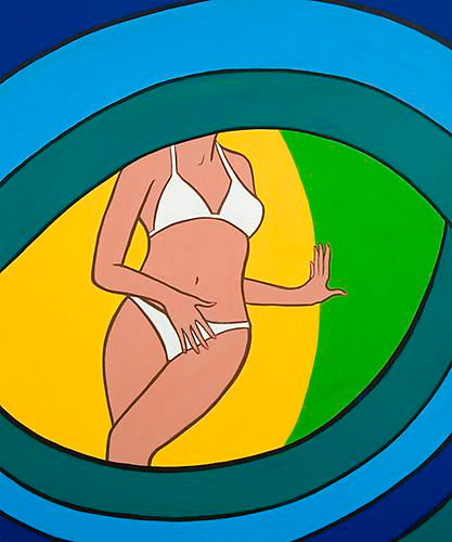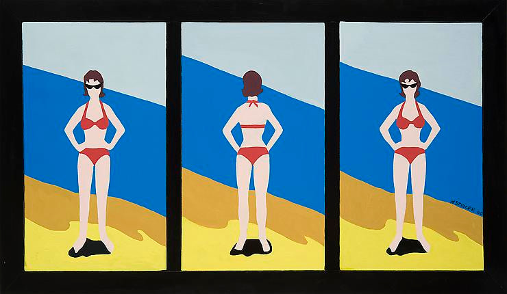 With more than 40 artworks on view from the 1960s, 1970s, and today, the exhibition includes pieces dating from Strider’s early exhibitions at Pace Gallery, including the influential “First International Girlie Exhibit” of 1964 and two subsequent solo shows. Strider’s bikinied beauties, such as the woman in Green Triptych (1963), acknowledge the fantasy of the pin-up girl while simultaneously dispelling it. These pieces were a focus of the Brooklyn Museum’s recent “Seductive Subversion: Women Pop Artists 1958–1968,” which was named best national thematic show by the U.S. Art Critics Association.