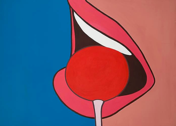 This exhibition also presents recent paintings that return to the subject matter that launched her career. In Big Bite and Invitation (both 2010), Strider continues to explore color and form through simplified and cropped compositions. And in paintings such as Descending and Eyeful, both from 2010, Strider evokes references from art history (Duchamp) and popular culture (James Bond) with wit and enthusiasm.