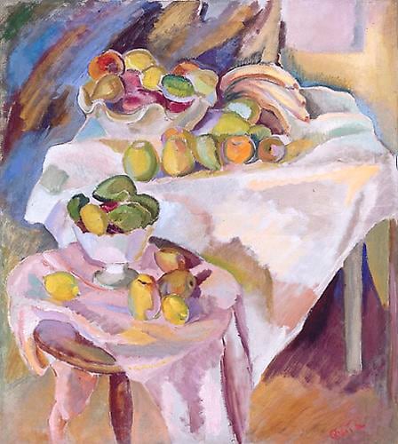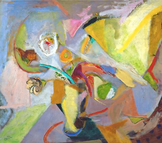 The exhibition, which opens on the artist’s one-hundredth birthday, provides a retrospective view of Quita’s work, highlighting eight decades of painting. Her stylistic development can be seen when comparing early academic studies to later abstracted compositions. An early work from the 1940s, Woman with White Gloves,--- incorporates Cubist-inspired elements such as her use of passage in the lower right as well as the flattened space of the tilting plane of the table. While these fragmented Cubist motifs are apparent, it is Quita’s concern with texture, brushstroke, and expressive color that has remained constant throughout her career. A still life from 1934, Bouquet with Red Salvia, exemplifies Quita’s vibrant palette and her use of complementary color combinations, such as the bright red flowers which contrast with the electric lime green of the vase. A later work, such as Tenerife, from 1960-61 executed during her ten month stay in the Canary Islands, demonstrates Quita’s shift towards abstraction which incorporates her use of color to create movement and volume.