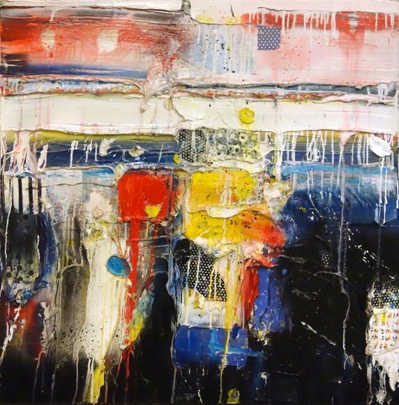 Alexis Portilla’s layered compositions create an expressive sense of depth that is both wholly contemporary and suggestive of the New York School. His meticulous consideration of surface results in vibrating, active planes of color that interact in interesting and unexpected ways. In a process that is equal parts planning and experimentation, he creates colors that are not mixed, but layered, often many times over. Visible passages of these multiple under layers give his work an atmospheric feeling of space. Portilla’s predominately grey palette, with undertones of blue and slate juxtaposed against bright passages of red and yellow, reflects the urban landscape in which he lives and works: “I’ve been living in New York for a long time and it’s natural for an artist to absorb images from the place they see daily.” (4)